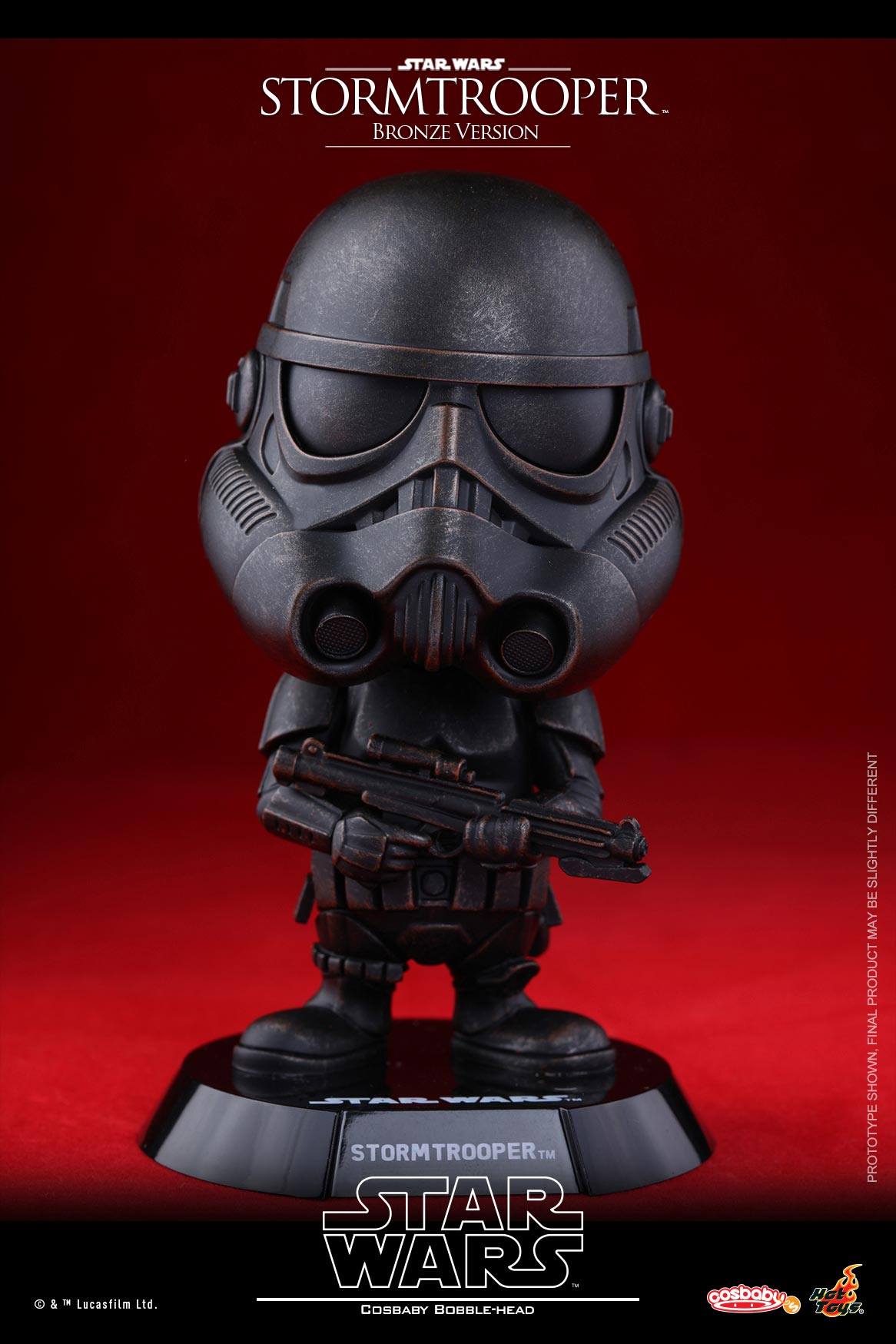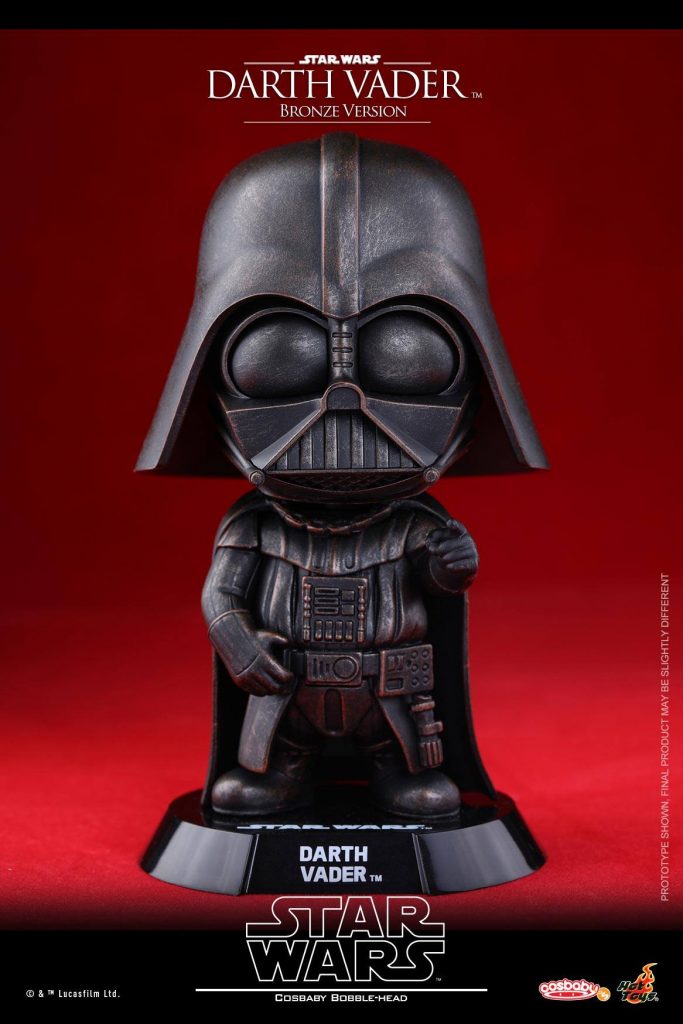 Another hour, and another Hot Toys Star Wars reveal. Now the company is soliciting information and official photos for two upcoming Star Wars Hot Toys Cosbaby Figures. The two new figures are Darth Vader and Stormtrooper, but they have a cold cast bronze paint application on them.