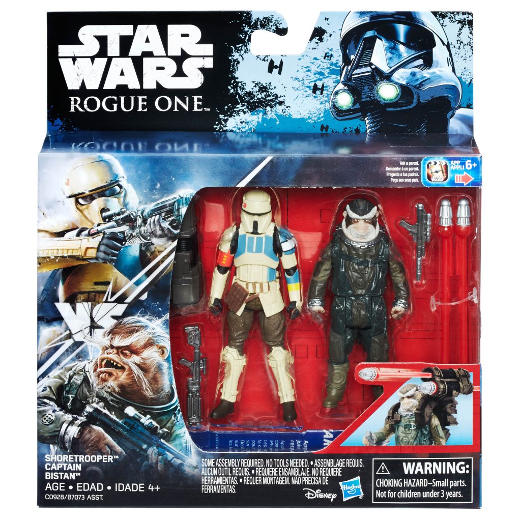 Pick a side in the galactic battle between good and evil! Choose between the IMPERIAL DEATH TROOPER and REBEL COMMANDO PAO or the SCARIF STORMTROOPER and MOROFF from ROGUE ONE: A STAR WARS STORY, or relive the events from STAR WARS: THE FORCE AWAKENS with POE DAMERON and the FIRST ORDER SNOWTROOPER. Each 3.75-INCH DELUXE FIGURE 2-PACK comes with 2 figures and multiple accessories, including a dual-projectile launcher. Each pack sold separately. Available at most major retailers and on HasbroToyShop.com. Compatible with the HASBRO STAR WARS STUDIOFX App.