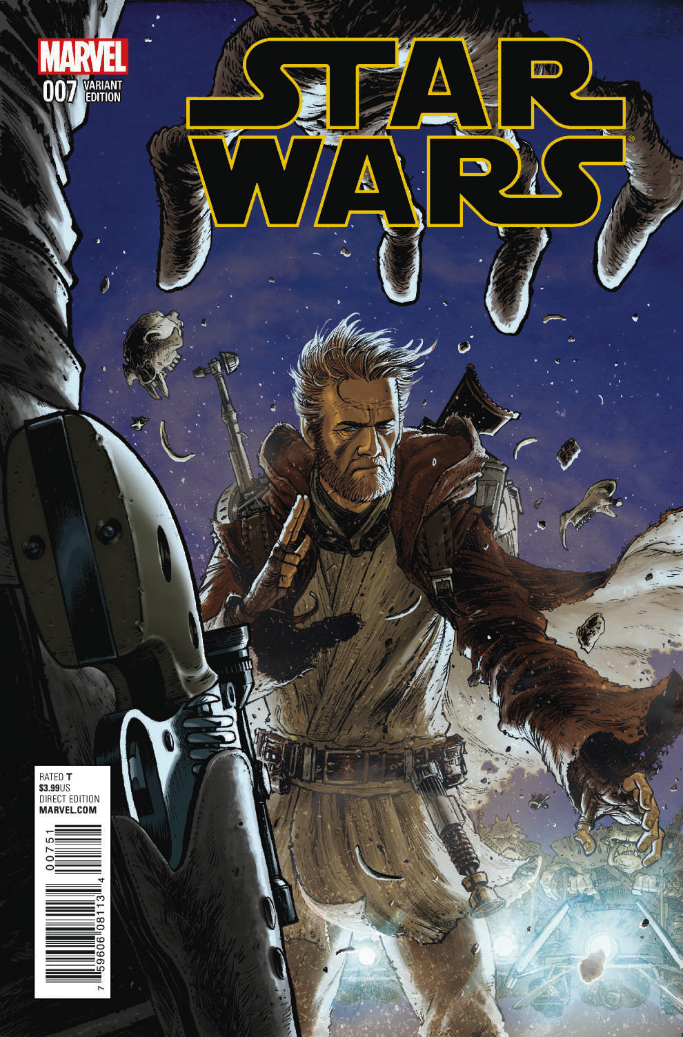 This July, experience a very special issue of the blockbuster Star Wars series as special guest artist Simone Bianchi (Thanos Rising, Astonishing X-Men) joins chart-topping writer Jason Aaron for a look back into the past with STAR WARS #7! Luke Skywalker has uncovered the journals of his departed mentor Obi-Wan Kenobi. Now, experience Kenobi’s harrowing accounts of days long gone by! It is a time when injustice reigned on Tattooine. As villainous scum runs rampant over the blistering sands, only a Jedi Master stands any hope of liberating the planet from the grasp of gangs, thieves and thugs. But would Ben risk everything to do what was right? Even if it meant revealing himself to those searching for his whereabouts? Find out this July as Aaron & Bianchi bring you STAR WARS #7!