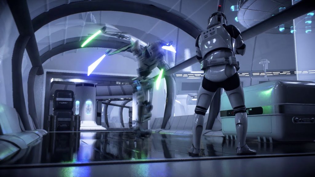 In Star Wars Battlefront II, General Grievous is designed to instigate fear and feel like an overwhelming opponent. His body frame is among the largest compared to any other character in the game, and he engages in combat with two – sometimes four – lightsabers.