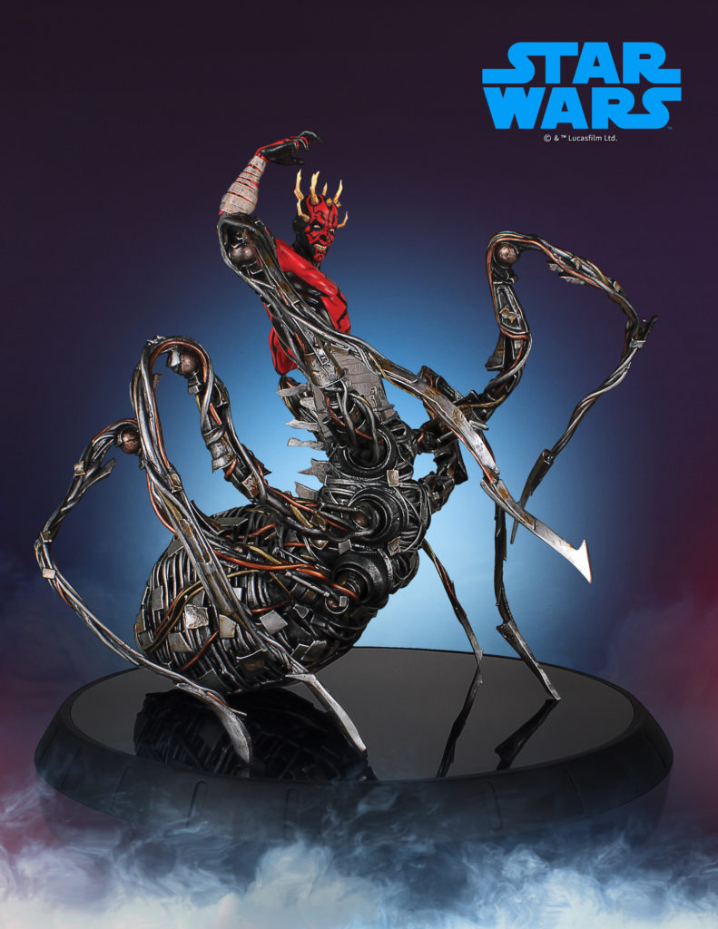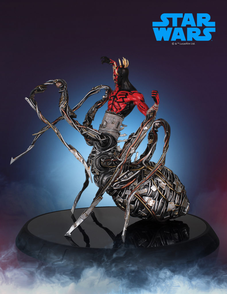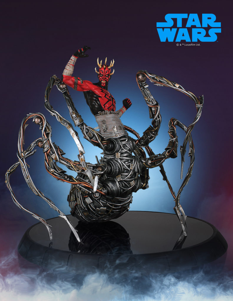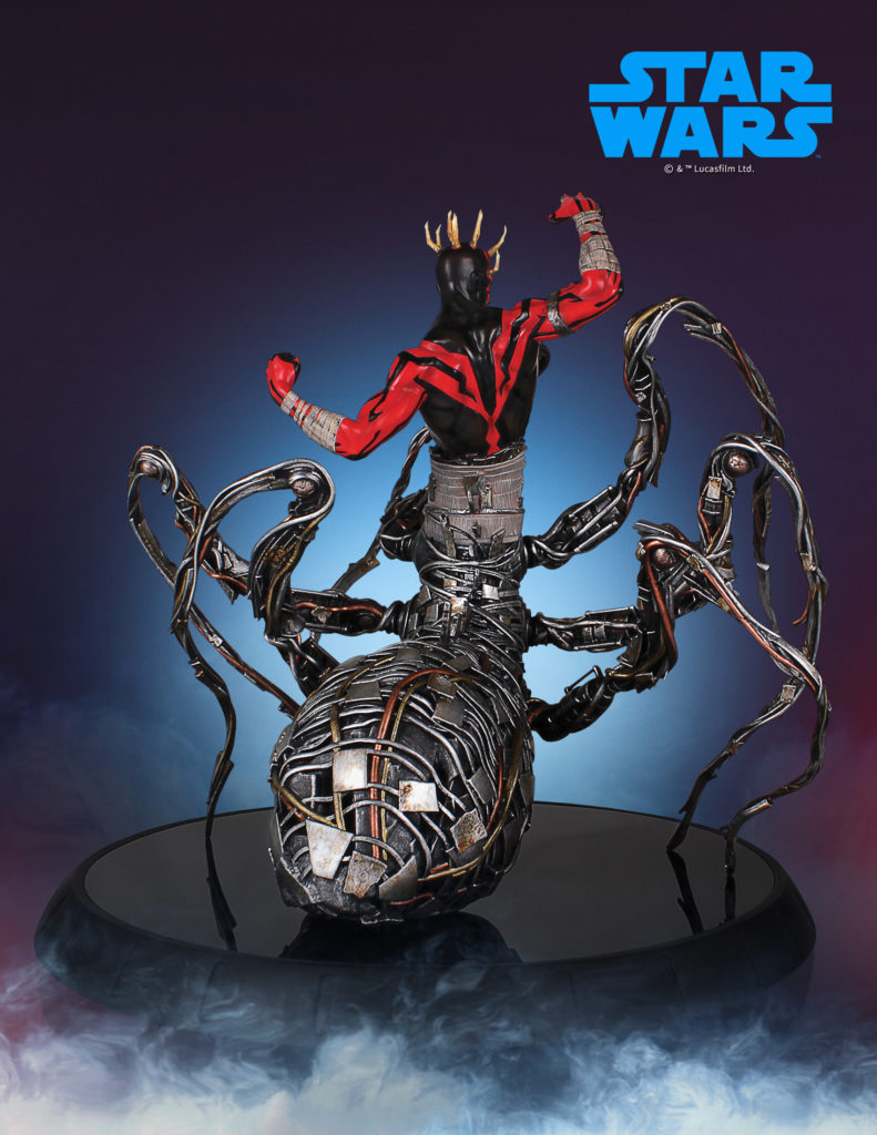 A deadly, agile Sith Lord trained by the evil Darth Sidious, Darth Maul was a formidable warrior and scheming mastermind. He wielded an intimidating double-bladed lightsaber and fought with a menacing ferocity. Though he fell in battle against Obi-Wan Kenobi, the Zabrak from Dathomir would prove to be much harder to destroy than originally believed. Darth Maul will be depicted with his Force-constructed spider legs in a 1:8 scale Collector’s Gallery statue, available for $200.00.