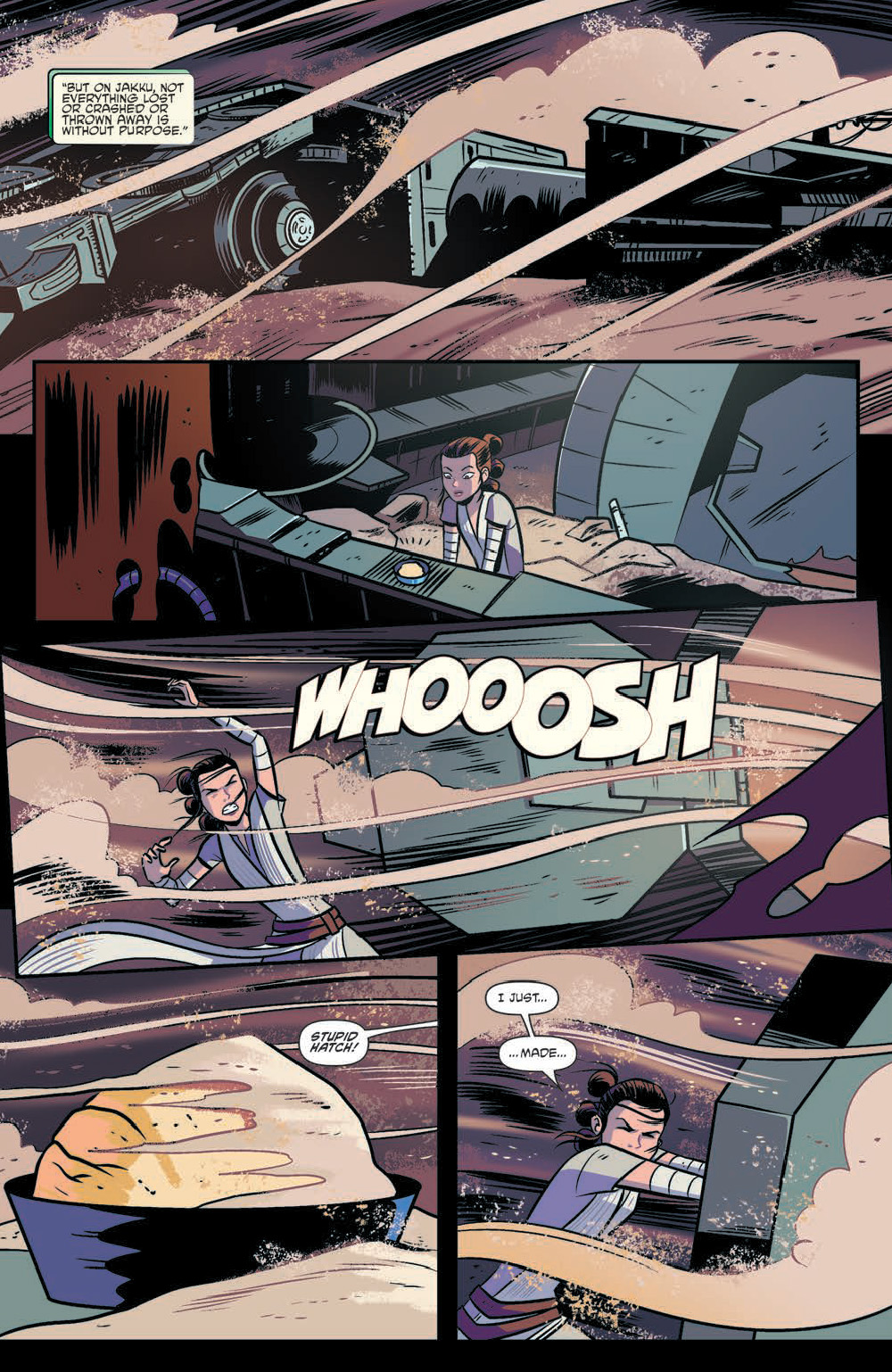 SWALLOWED BY THE SHIFTING SANDS OF JAKKU, THE IMPERIAL STAR DESTROYER SPECTRAL HAS BEEN LOST FOR TWO DECADES, GIVING RISE TO RUMORS OF HAUNTINGS AND BURIED TREASURE. BUT AN EPIC SANDSTORM HAS REVEALED THE RUINS OF THE STARSHIP, AND RENOWNED SCAVENGER REY NOW LEADS THE RACE TO CLAIM WHATEVER LIES WITHIN!